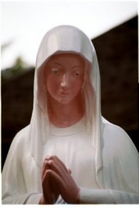 After drinking the beer and smoking half a joint I was standing a few meters away from the statue of Notre Dame when I realized that the Impecable White Icon of María was no longer a White Impecable María but rather was a Sad Weeping Madonna because a Black Tear of Sadness was running down from the right eye of the Image of Notre Dame de Banneux! I approached the Weeping Statue and was astounded dumbfounded as I saw a Black Sad Tear ‘running down’ from the inner corner of the right eye of the Icon of María! Never before had I seen such a Tear on the Face of the statue during the hours I had been exposed to the statue that early morning and during the night before; but now I saw Manifest a Black Sad Tear running down from the Eye of María. I wondered if I had been so inattentive to the details of this Icon of María, or maybe this was a black insect or a black leaf fallen by ‘chance’ with the wind on the eye of the statue of María? I considered all kinds of natural explanations that would account for the apparition of the Black Tear on the Eye of María; however I felt strange about the fact that the Forces of Nature had formed such a naturally sized Black Tear running down from the Eye of María to show me what was a very evident image of a Sad Weeping Madonna.