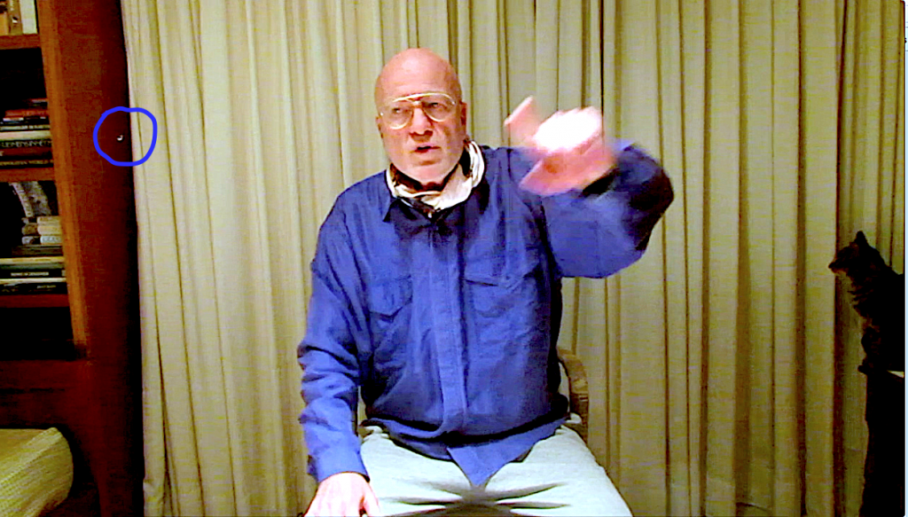 At minute 26:26 of the video, when I was lecturing on the importance of Freeing Animals from evil cages, God was Incarnated in the Soul of the Cat to send Mipi climb up the furniture to walk right next to the valuable painting of my mother, threatening to throw it down; I got up and caught the cat and showed the cat to the audience; after a few words and caresses, I invited the cat to: ‘Greet the Audience’; 3 times I invited the cat to greet the audience, and as I continued my talk, Mipi climbs on the table and Inspired by God looks into the camera to Greet the Audience, looking at the eyes of the audience through the camera. Thus God sent Mipi to the camera to greet the audience, as I had told him 10 seconds earlier, so that this Animal of God that needs to be Free, as I was indicating in my speech, is present in the video, with the Presence of the Spirit of God, providing more evidence that the Spirit of God is Manifest within the Soul of Animals and may Manifest through Animals.