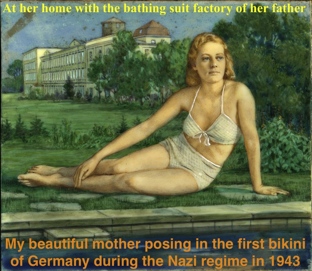 I am Blessed by God for having had a most beautiful Angel mother that took care of me during all my life so I may give my message to the world to eradicate the suffering of Sacred Animals. Many Miracles of God were manifest during the final hours of the life of my mother; a few hours before her death she suffered the terrible pain of passing renal stone, that I eliminated with an imposition of hands with a prayer while singing the lullaby song she used to sing to me as a baby boy (Book). Below a few pictures of my beautiful mother; Madrecita might be the first woman to pose for a painting in a bikini, she posed in Germany in 1943 during the criminal Nazi regime, being half Jew, to fight for the emancipation of all the women of the world that are subdued by the macho patriarcal system of ignorant brutal men (Madrecita).
