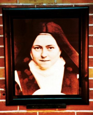 Saint Therese showed me dozens of Miracles and I met her through a Love at First Sight with her picture in the Cathedral of Nijmegen. Below pictures of Therese with Petals of Roses she always gave me with Hearts of Light; and a symbolic Embrace of Love in a Symbolic Picture in the Chapel of Saint Rafael.
