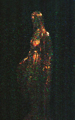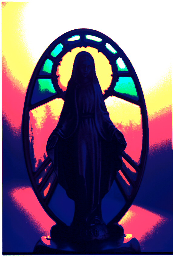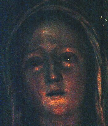 Angels of Light may change the Colors of Light in any Miracle Picture. Saint Anna is the Miracle Mother of the Virgin Mary: below the Transformation of Colors of the Image of Beautiful Santa Ana of Jerusalem: the Golden Color Picture shows a Beautiful Smile that is not seen in the control picture with the white color in the white marble statue of Saint Anne in the Holy City of Jerusalem.