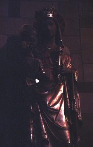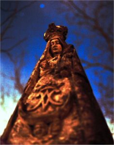 The statue of the Blessed Virgin of Fatima smiled at Santa Lucia after Lucia asked María to make her a Saint and this Vision of Lucia anticipated the Apparitions of Fatima. During my visit to Fatima I took 2 pictures of this statue of María: one picture shows the statue smiling at me, while the second picture is not smiling: the pair of pictures provides evidence to this Manifestation with Saints of God. The Pictures were Manifest a few hours before the Apparition of the Rainbow of the Night of Fatima with the Dance of the Moon during the celebration of the Dance of the Sun of Fatima.