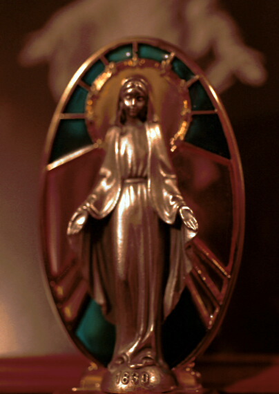 I was scanning pictures of my Miracle Medal of the Apparitions of Paris and a Hair was Materialized in the scanner as a Heart of Love on the feet of the Medal of Maria. The Hair was placed in the Perfect Place where it becomes the focus of attention of the eyes, the head, and the hands of the Image of María. The Head of María is Tilted towards the Hair; the eyes of María are looking at the Hair and the open arms of Maria are showing the Hair of Love that spontaneously appeared in the scanner. I am bald and have no long hairs and thus the hair in the scanner is not mine. The normal picture of the Miraculous Medal is shown in the control picture: comparing the Miracle Picture with the control picture you see that the Head of María with the Materialized Hair is Turned Towards the Hair to show the Kinetic Manifestation of the Angels of the Lord.